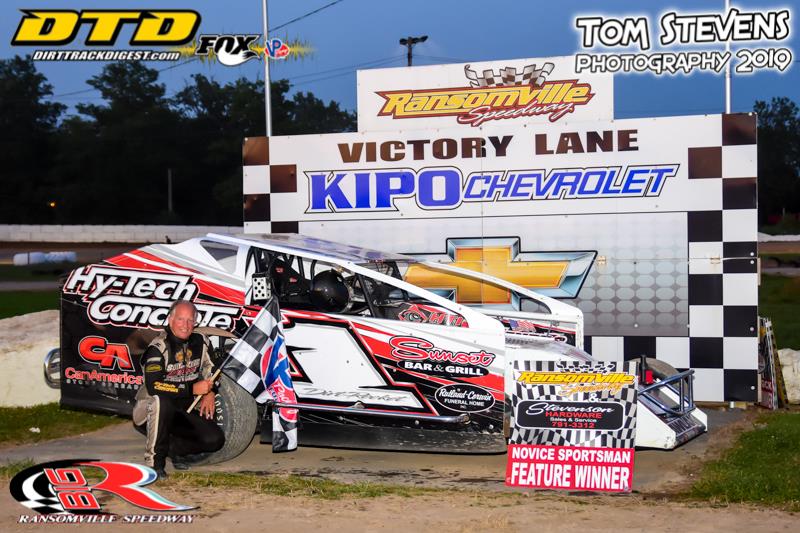 RANSOMVILLE, NY (July 26, 2019) Dave Bailey from Hagersville, Ontario picked up his first John Susice Memorial for the KiPo Chevrolet Street Stocks on Sunflowers of Sanborn, Rutland Corwin Funeral Home and Jetport Lounge Night at the Ransomville Speedway on Friday night. Defending Krown Undercoating Modified track champion Erick Rudolph from Ransomville, NY scored his fourth feature win of the season. Derek Wagner from Middleport, NY scored his second Investors Service Sportsman feature of the season. Cole Susice from Ransomville, NY scored his first win of the season in the Gippsters Collision Mini Stocks. Bubby Pawlak from Wilson, NY scored his fourth Stevenson’s Hardware Novice Sportsman feature winner.